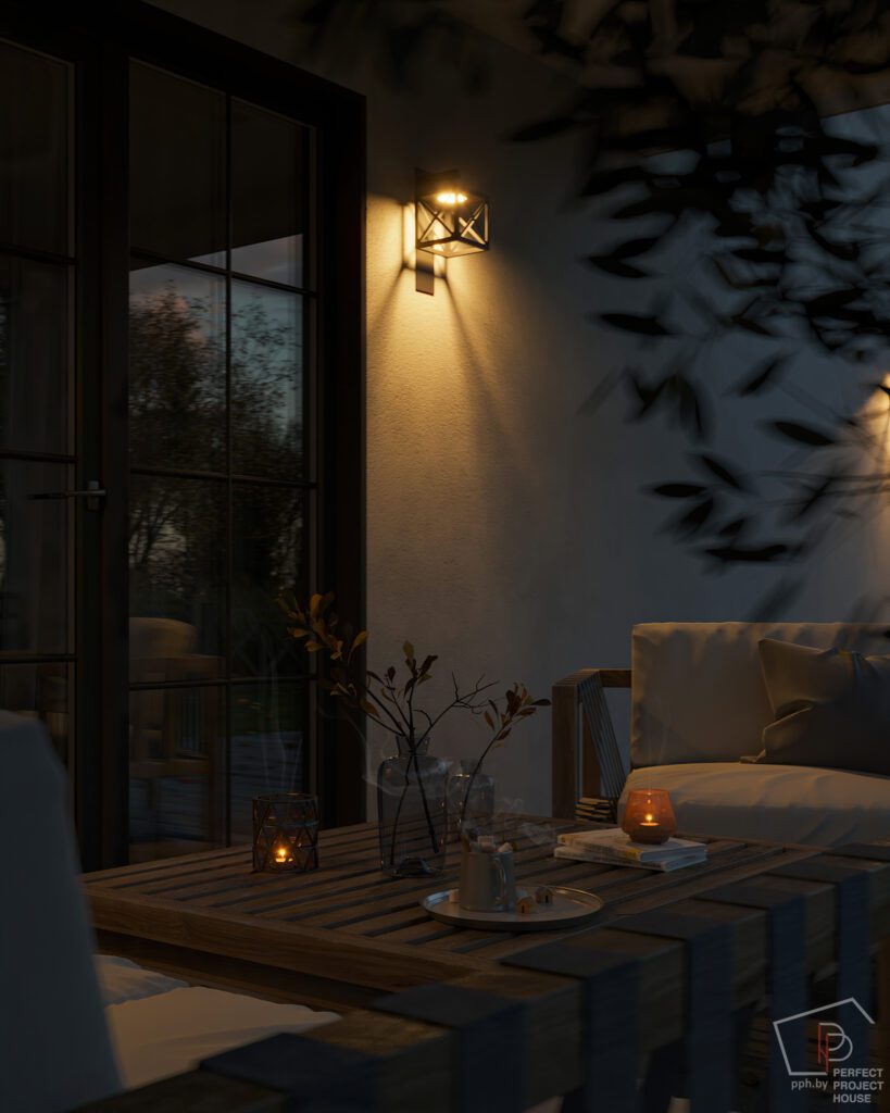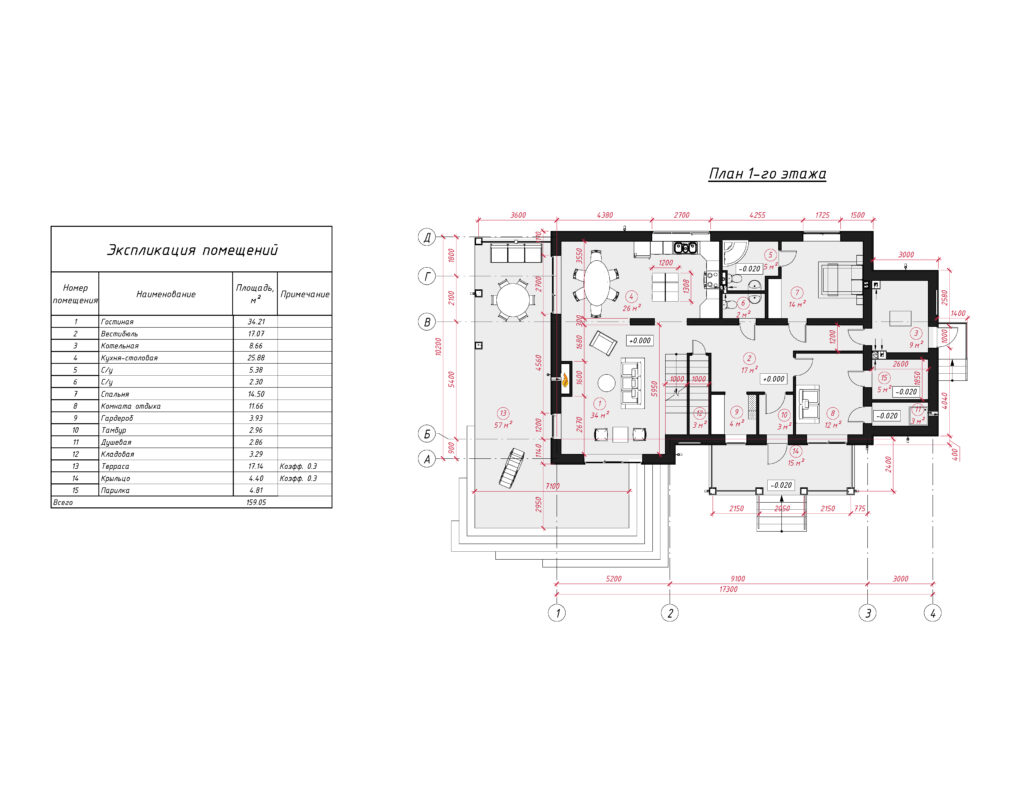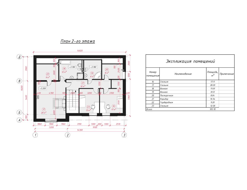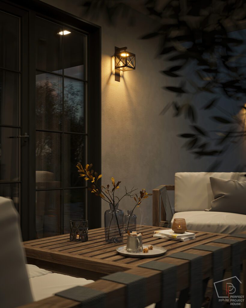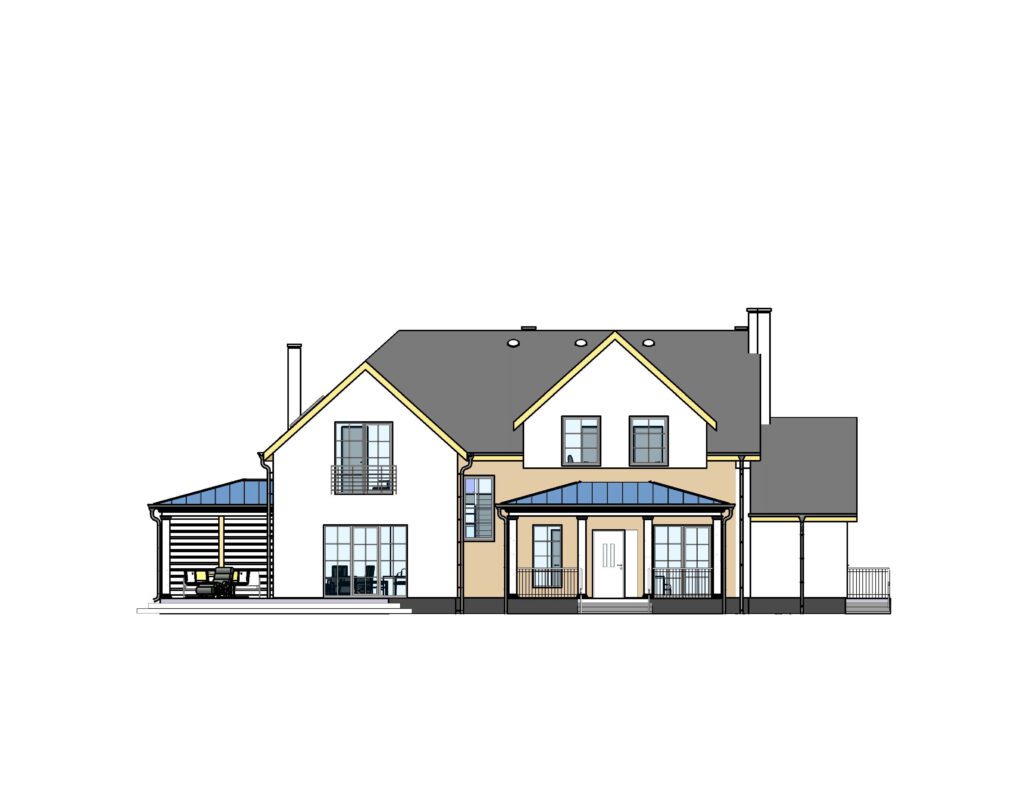 Планировка здания продумана до мельчайших деталей. На площади 269,9 м2 размещаются 4 комфортные спальни, что делает дом идеальным для проживания 4–6 человек. Первый этаж занимает гостиная зона с кухней-столовой и хозяйственными помещениями. Из кухни можно выйти на большую крытую террасу, огороженную металлическим парапетом. На втором этаже располагаются постирочная, две ванные комнаты, спальни, рассчитанные на полноценный отдых хозяев и их гостей.