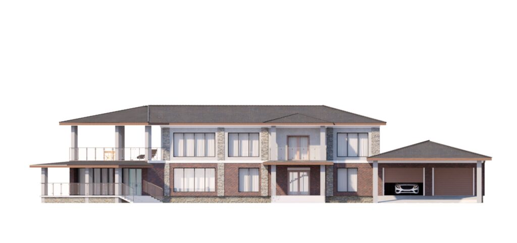 На первом этаже обустроен просторный гараж с двумя отдельными въездами с подъемными воротами. Из него ведет два выхода: на улицу и в гардеробную, чтобы в непогоду можно было из машины сразу попасть в теплый дом.