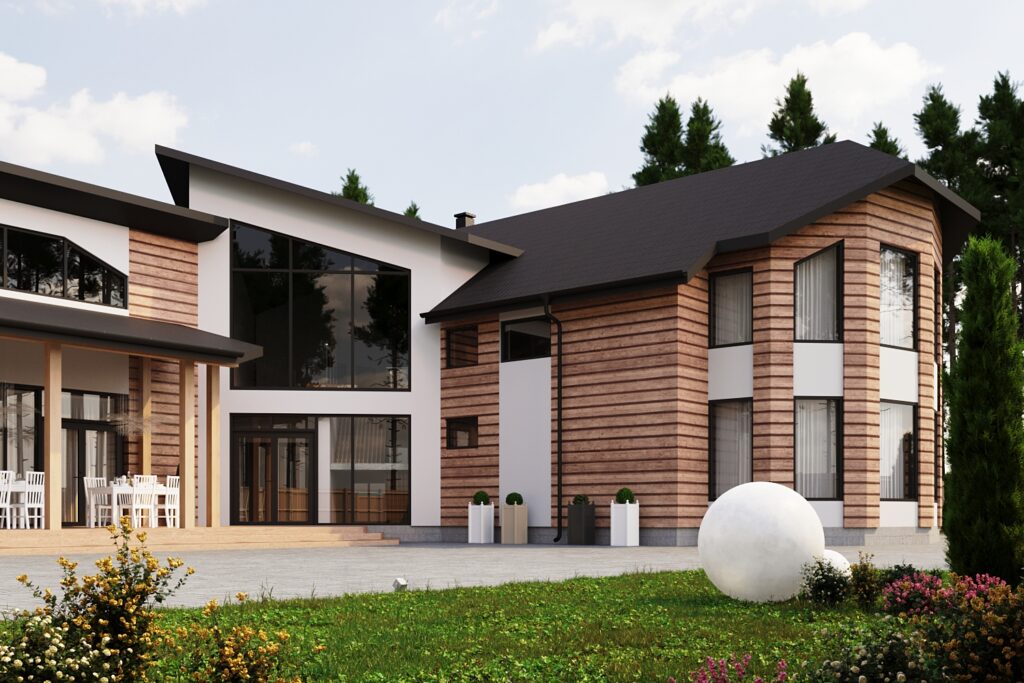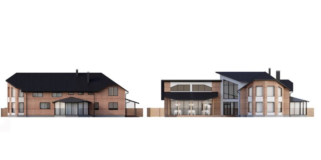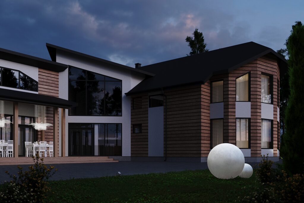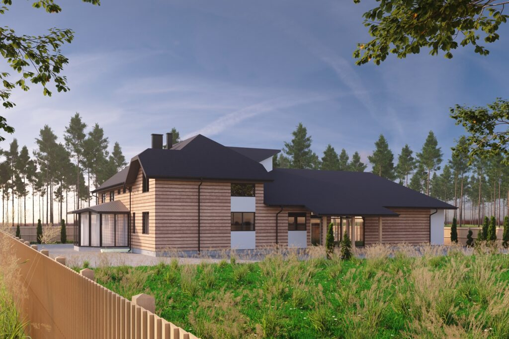 Огромный особняк площадью около 500 м2 воплощает собой роскошь и стиль, граничащие с функциональностью. Заказчик хотел построить двухэтажный коттедж для большой семьи, родственников и гостей. Было решено разработать индивидуальный проект, чтобы учесть все требования и возвести максимально комфортный дом с 10 просторными спальнями, 5 санузлами и несколькими обустроенными зонами отдыха.