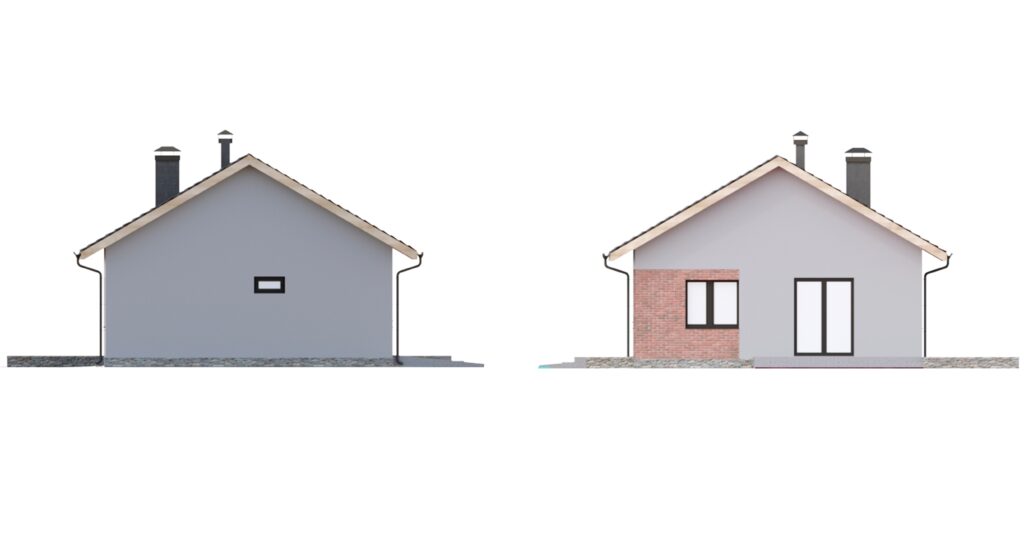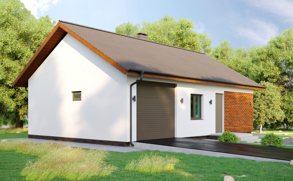 Планировка дома включает две спальни и один санузел, обеспечивая все необходимые удобства для жителей. Особое внимание заслуживает наличие встроенного гаража, который предлагает удобное и безопасное место для хранения автомобиля или другого транспортного средства, а также может служить дополнительным пространством для хранения.