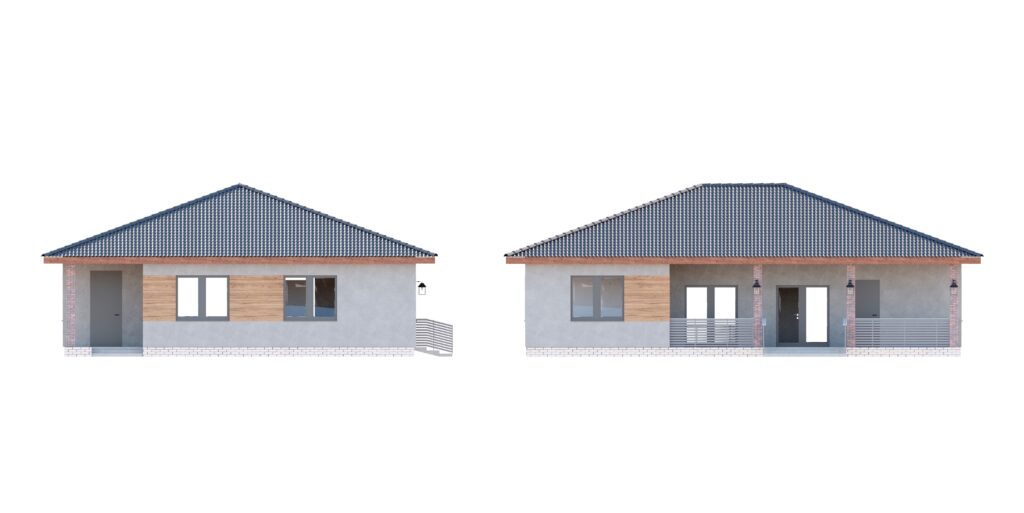 Дизайн дома ориентирован на комфорт и функциональность. Планировка включает в себя две спальни, что идеально подойдет для семьи с одним или двумя детьми, или для пары, которая предпочитает иметь дополнительное пространство для гостей или для использования комнаты в качестве домашнего офиса.