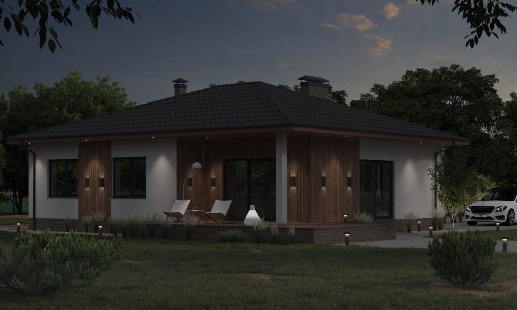 Этот дом спроектирован с учетом современных тенденций и обладает высокой энергоэффективностью. PPHouse-100-13 имеет стильный и элегантный дизайн, который гармонично сочетается с окружающей средой. Красивые цветовые решения фасада подчеркивают современный стиль здания и добавляют некую индивидуальность.
