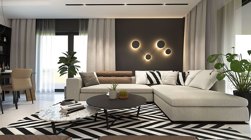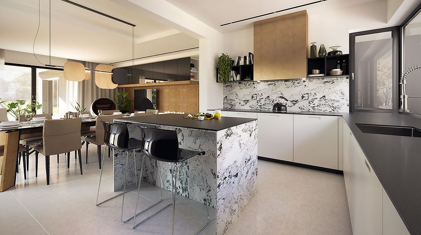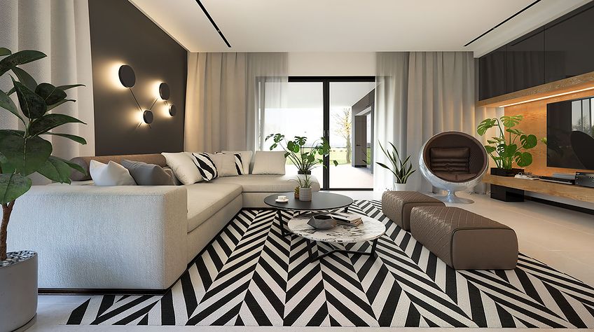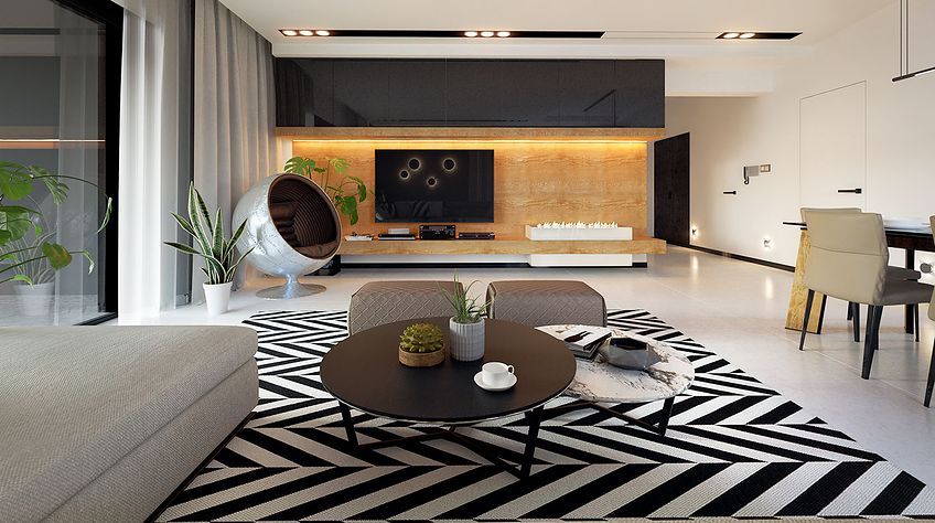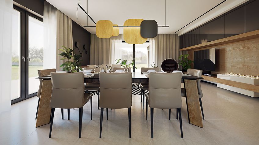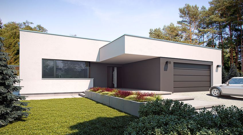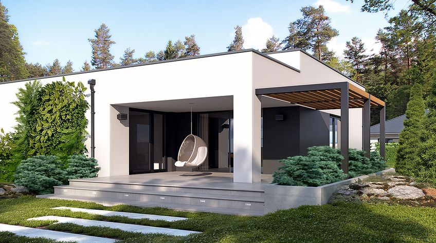 Проект одноэтажного дома на 266,95 м2 разработан в современном архитектурном стиле. Простые формы фасадов в светлых и темных тонах органично дополняются навесом из древесины и большой площадью остекления по всему периметру здания. Планировка отличается функциональностью и комфортом. Внутри предусмотрены кухня-столовая с гостиной зоной, спальня, две детские комнаты, три санузла. Для более удобного проживания в доме запроектированы подсобные помещения – прачечная, гардеробная, котельная с отдельным выходом. Под хранение автомобилей оборудован встроенный гараж на два места.