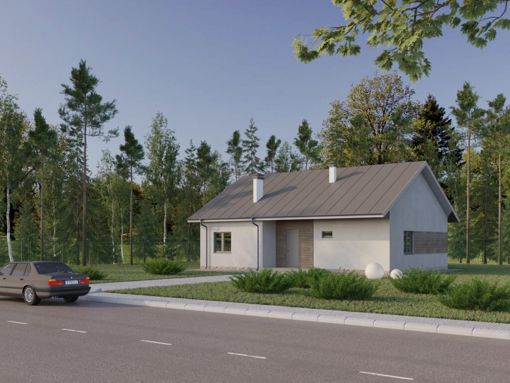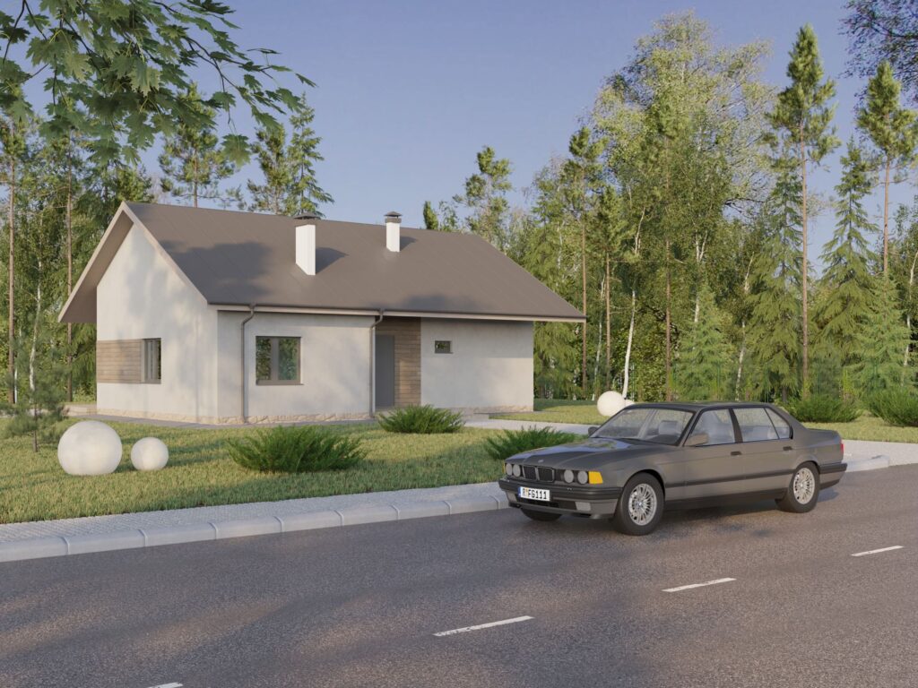 Из кухни-гостиной через панорамные двери попадаешь на крыльцо и просторную террасу для отдыха на свежем воздухе в хорошую погоду. В доме располагаются три небольших спальни – 11, 14, 16 м2 –и два санузла. Объект построен на небольшой территории, поэтому полезную площадь было решено увеличить за счет чердачного помещения. На просторном чердаке хватит места для кладовки, мастерской или дополнительной зоны отдыха.