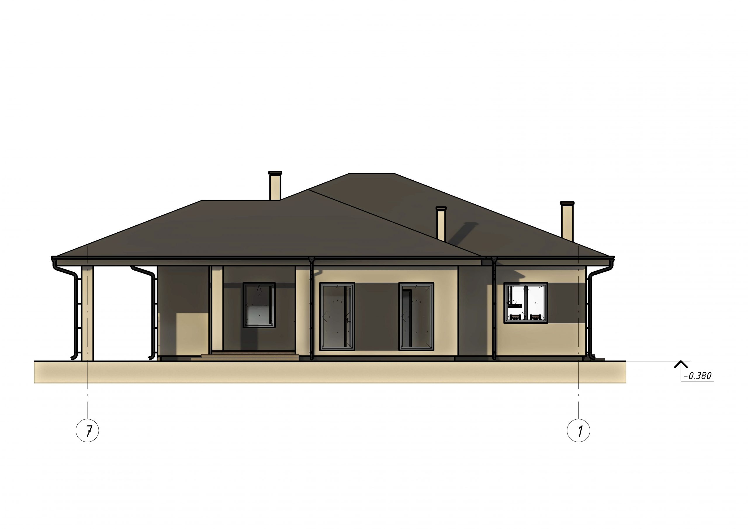 В целом, проект PPHouse 150-15 предлагает функциональное и удобное жилье с крытой парковкой, двумя спальнями, одним санузлом, террасой и навесом для машины. Этот проект идеально подходит для семей, ценящих комфорт и практичность в своем доме.